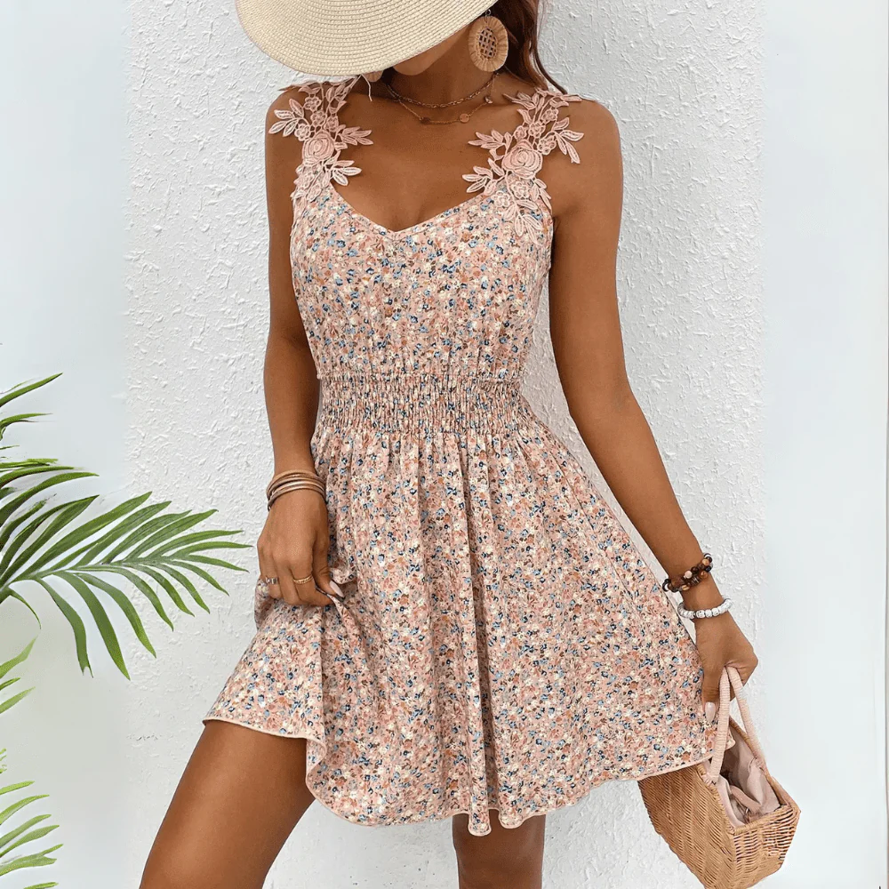 Ljusrosa småblommig sommarklänning med spetsaxelband – din perfekta sommarlook