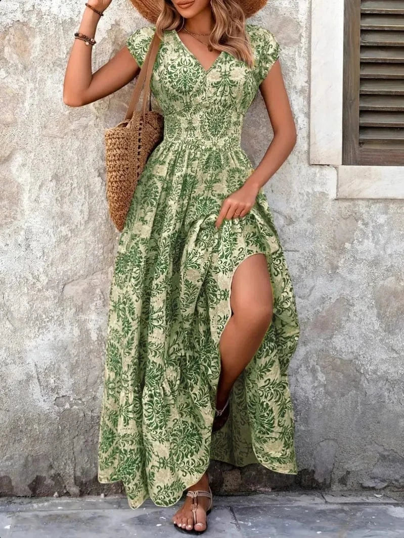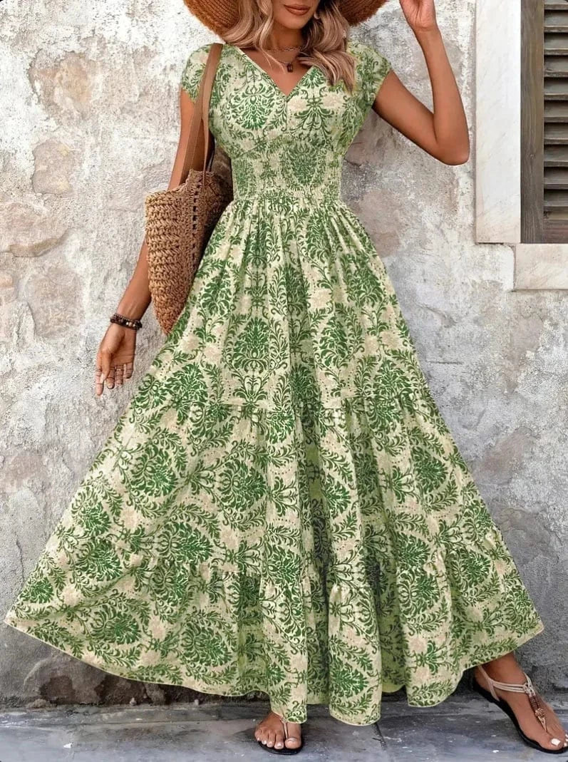 Maxiklänning dam med V-ringning och kort ärm – för en tidlös och feminin stil