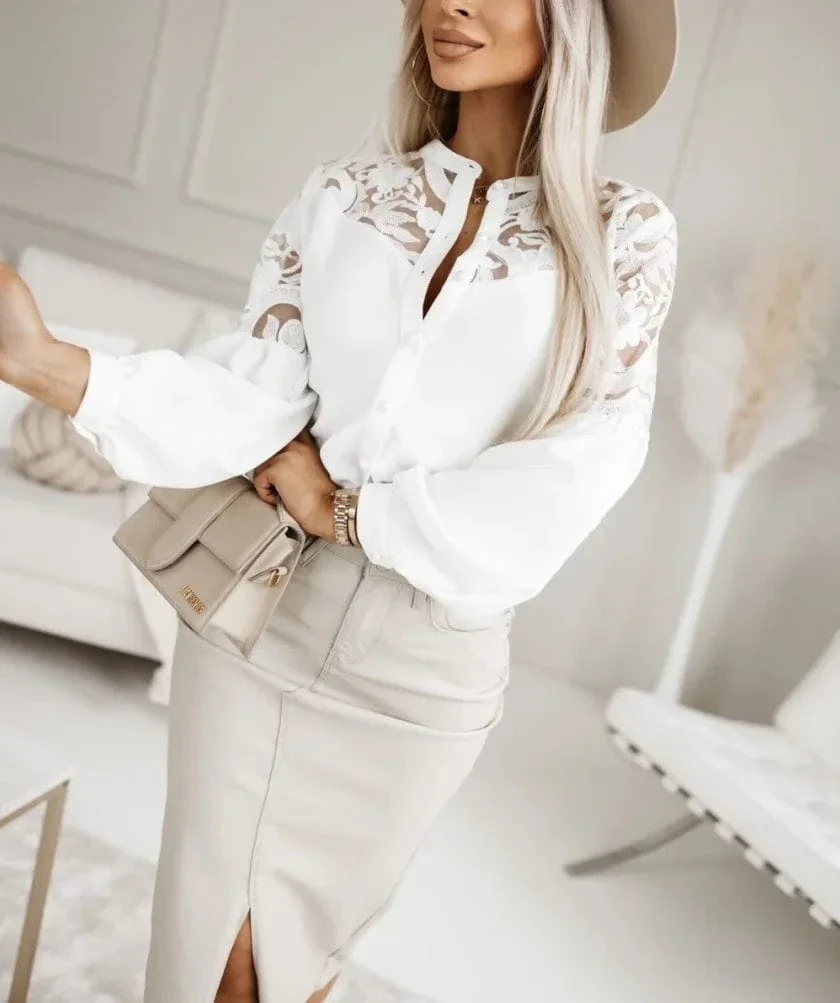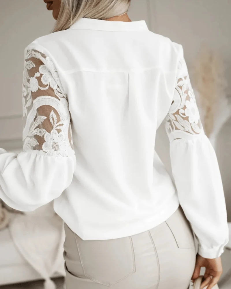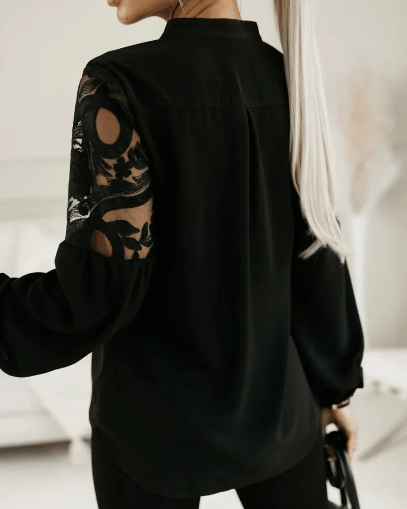 Modern blus med kinakrage och genomskinliga ärmar – stilren elegans för alla tillfällen