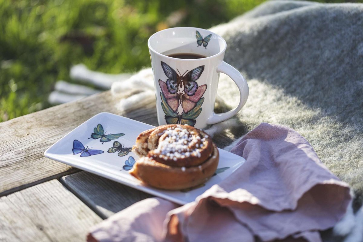 Fin rymlig mugg med tryckt motiv med fjärilar på.