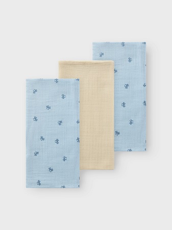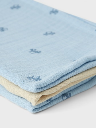 Mjuka och mysiga muslinfiltar från name it. Filtarna kommer i 3-pack och passar bra som snuttefilt, vid amning eller som en extrafilt i vagnen.