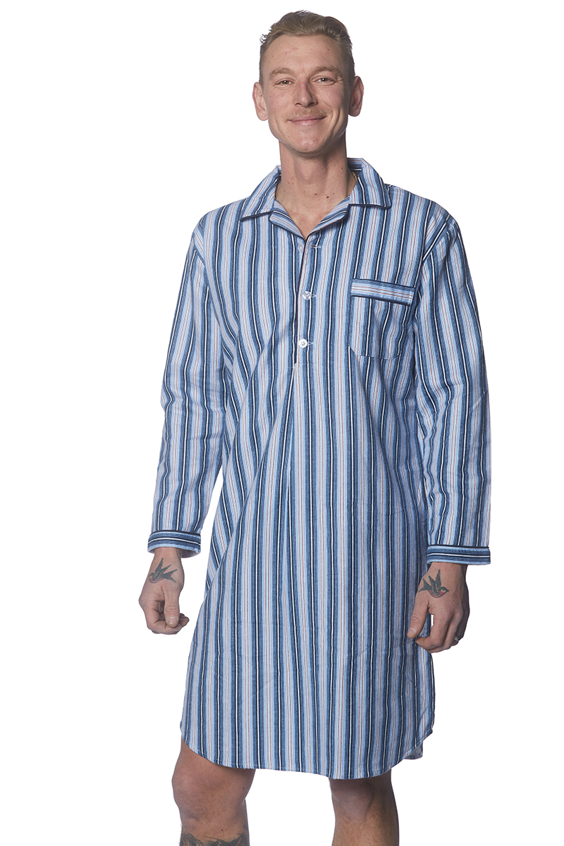 Nattskjorta i flanell, kort knapprad fram och en bröstficka.