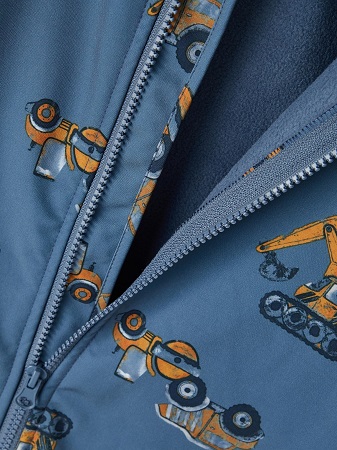 SE HIT! Så fin overall tillverkad av återvunnen polyester från Name It! Detta är det perfekta lätta, vattentäta ytterplagget för att göra övergången mellan årstiderna så smidig som möjligt. Med höga tekniska förmågor är overallen det självklara valet. Overallen har dekorativa reflexdetaljer, pipingdetaljer, avtagbar huva samt är förstärkt vid knän och bak. Overallen stängs med dragkedja som går fram och ner längs med ena benet. Overallen har även ett fint heltäckande tryck av små grävmaskiner som upprepar sig över hela overallen. Denna produkt är gjord av återvunnen polyester. Återvunnen polyester sparar naturresurser och minskar mängden avfall.