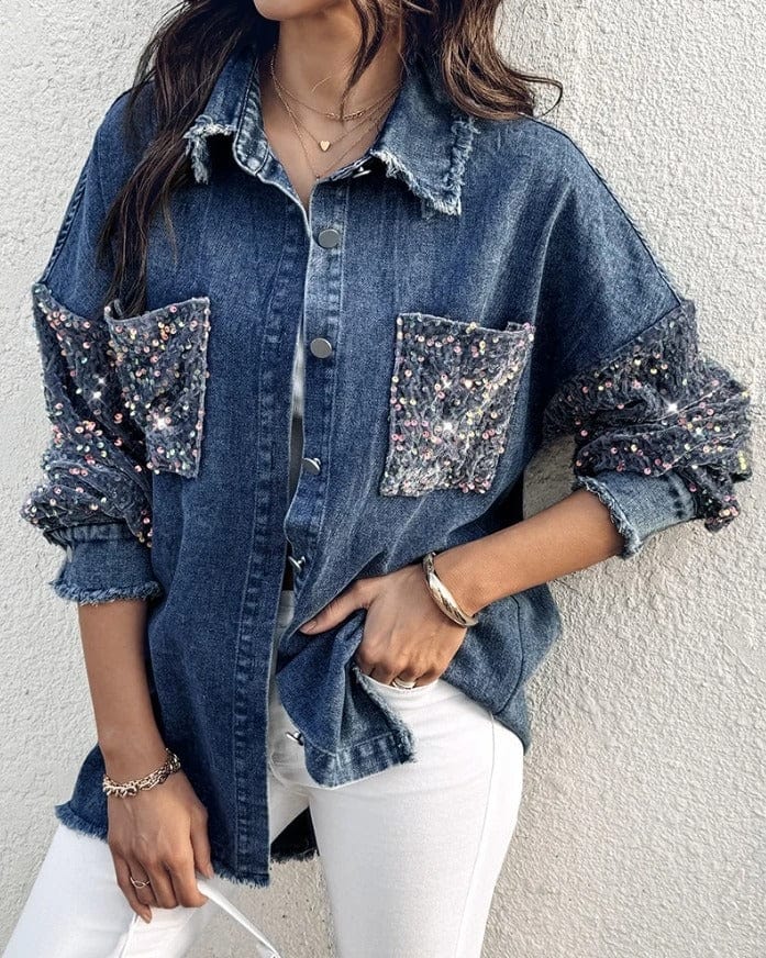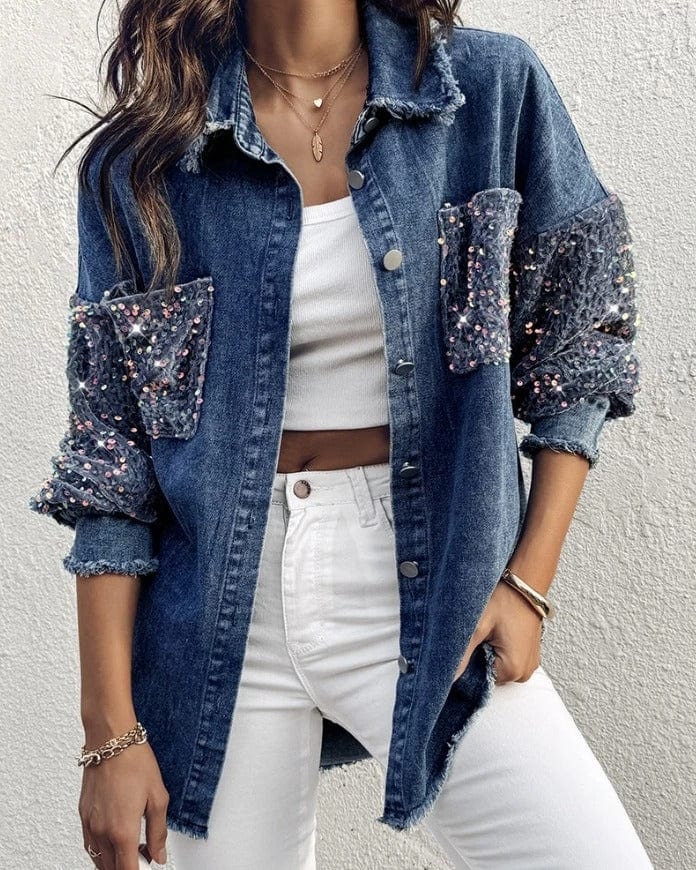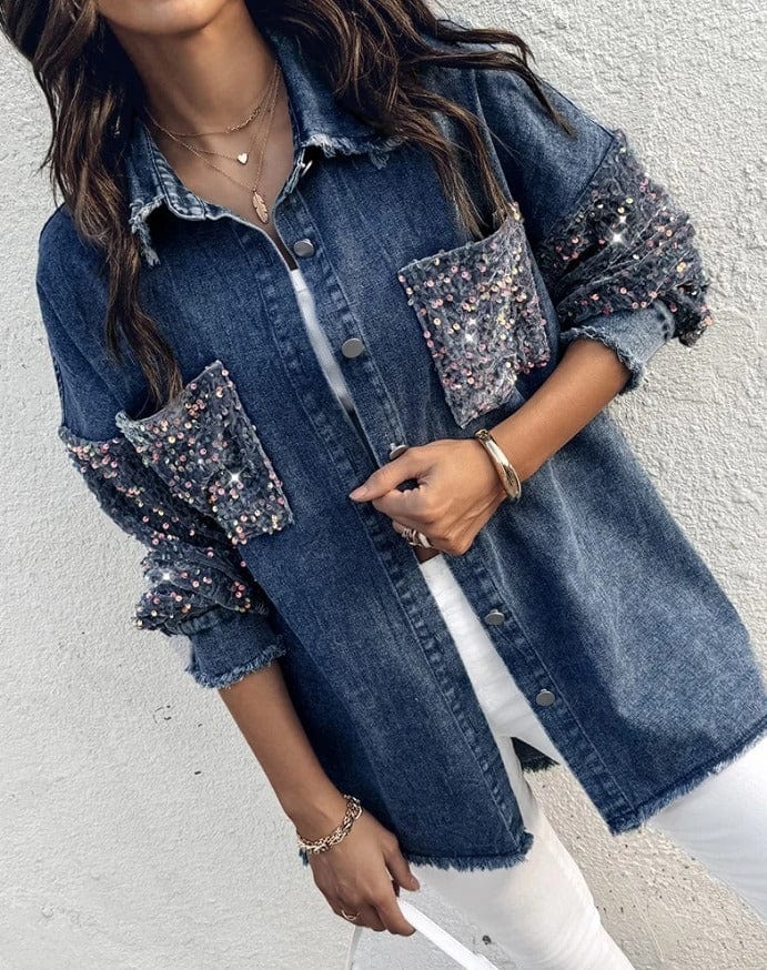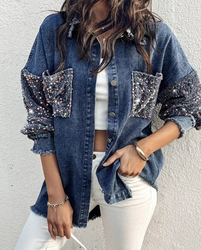 Oversize jeansjacka dam med paljetter – låt din stil glittra med varje steg