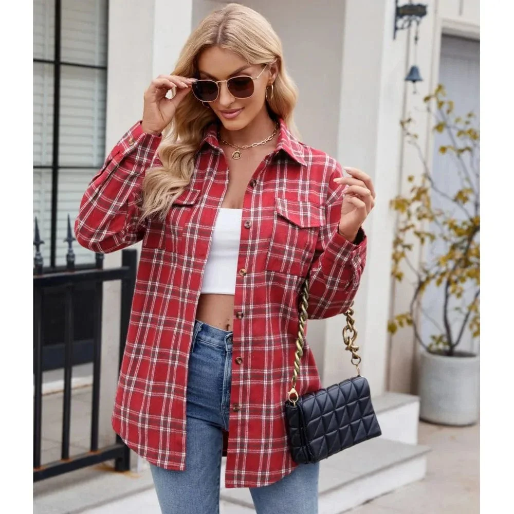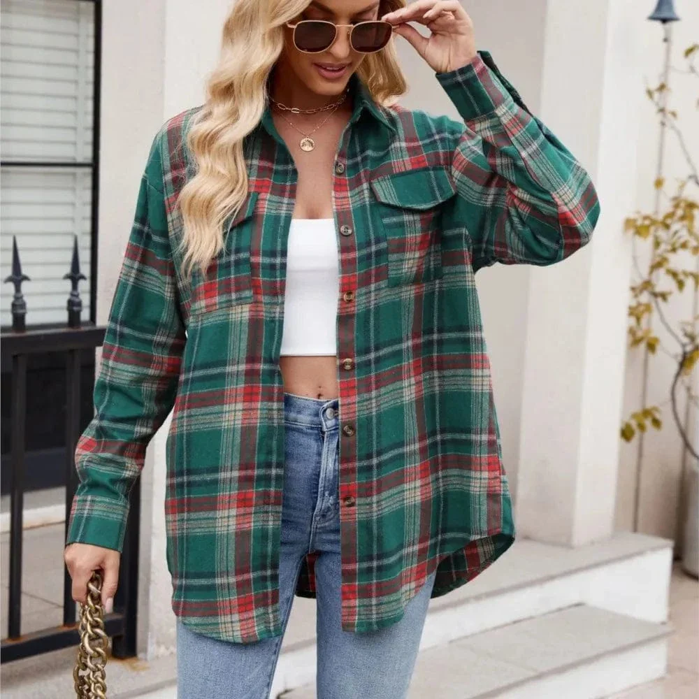 Gör dig redo för säsongens mest mångsidiga plagg – en oversize rutig skjorta för dam som kombinerar avslappnad elegans med tidlös charm. Perfekt att styla lager-på-lager under kyliga höstdagar eller bära solo med jeans för en lättsam look.