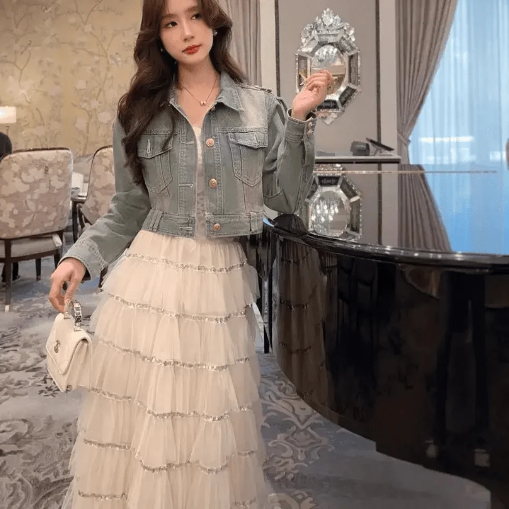 Låt dig svepas bort av magin i denna paljettkjol med tyllvolanger – en lekfull men samtidigt sofistikerad kjol som får varje steg att kännas som en dans under kvällshimlen. Perfekt för dig som vill kombinera western-attityd med en touch av glamour.