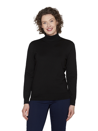 Finstickad polotröja från Brandtex. Polotröjan har en hög krage som går att vika ner och långa ärmar med ribbstickade kanter vid ärmsluten. Polotröjan är normal i storleken.
