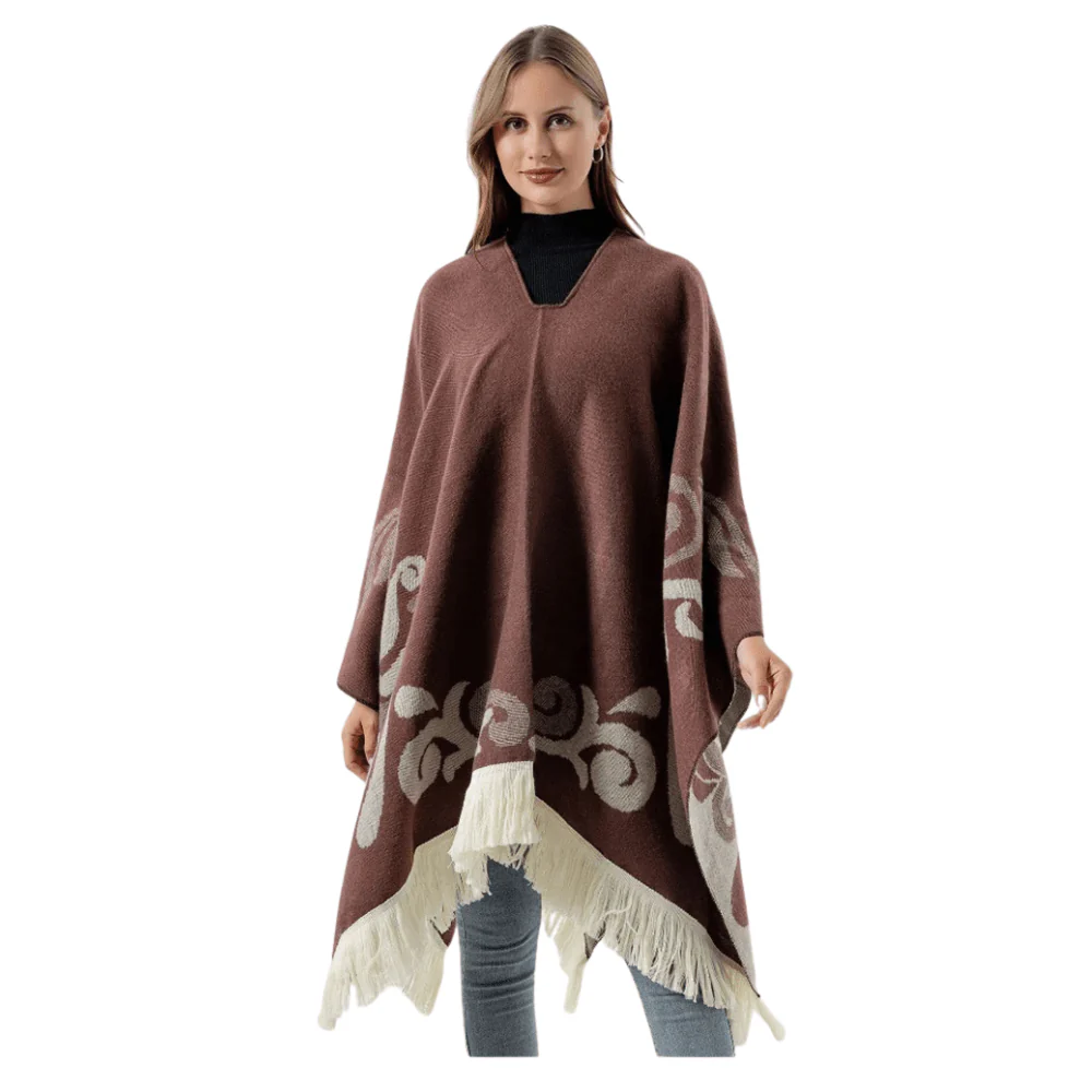 Låt dig svepas in i värmen av vår poncho med fransar – en tidlös accessoar som förenar västern-chic med mjuk komfort. Perfekt för när du vill ha en stilfull look utan att kompromissa med bekvämligheten.