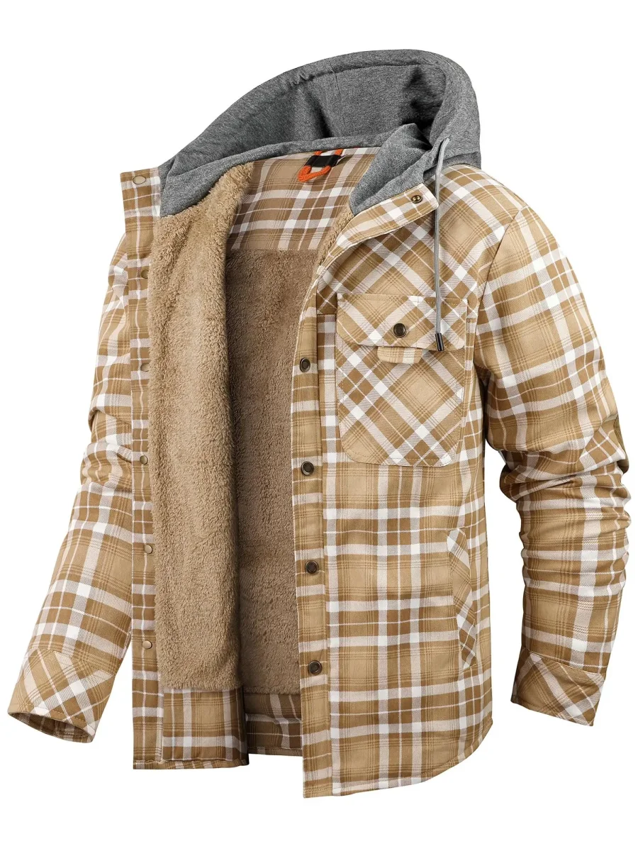 Rutig jacka med huva som ger dig värme, stil och cowboy-attityd