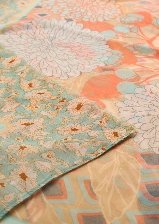 Vacker scarves tillverkad av 100% återvunnen polyester. Den har en rektangulär design och ett färgglatt blommönster. Det är den perfekta accessoaren för att piffa upp vilken outfit som helst.