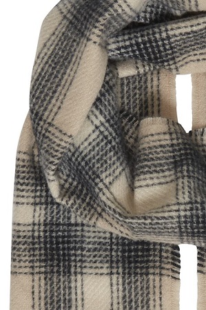 Mjuk finstickad sjal från FQ 1924. Sjalen är designad med fransade kanter och ett stiligt rutigt mönster som ger en sofistikerad touch till din outfit. Den mjuka stickningen erbjuder både värme och komfort.