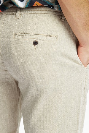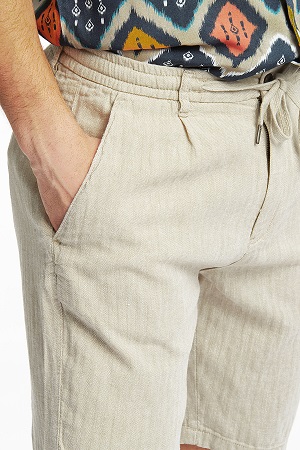 Shorts i en lätt och luftig bomullsblandning med linne. Det finns både resår och spets i midjan. Shortsen har två sidfickor och två kantfickor bak med knappar. Tillverkad i avslappnad passform, som är något tightare än vanlig passform, men ändå tillåter rörelsefrihet.