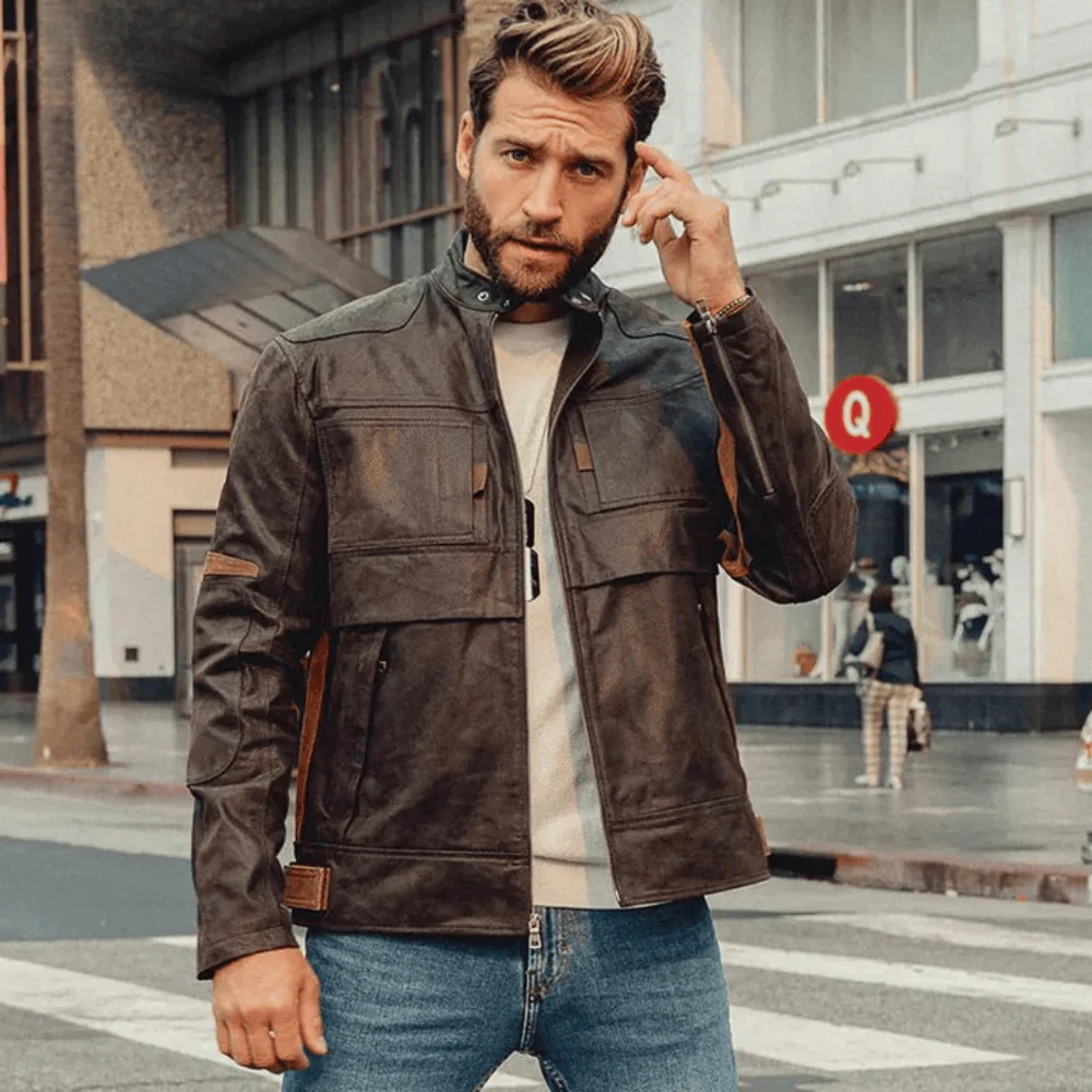 Skinn mc jacka herr som lyfter din stil och följer din rytm på vägen