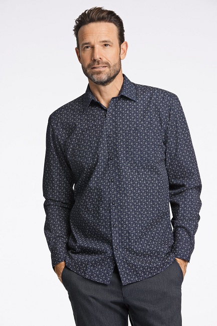 Mönstrad skjorta från Jack’s. Skjortan har en enkel bröstficka på vänster sida och manschettens bredd kan justeras med två knappar. Skjortan är tillverkad i Comfort-fit för ökad rörelsefrihet. Skjortan har klassisk skjort-krage och knappar fram. Modellen på bilden är 188 cm lång, har ett bröstmått på 102 cm och bär storlek M. Denna skjortan är certifierad som STANDARD 100 av OEKO-TEX® och följer därmed de strikta reglerna för skadliga och miljöskadliga ämnen enligt standarden. Alla komponenter i produkten, t.ex. tyg, tråd, knappar, etiketter etc. har testats och godkänts enligt STANDARD 100 av OEKO-TEX® krav.