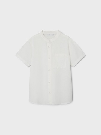 Skjorta från Name It. Skjortan har ett vävd tyg som erbjuder en ren och klassisk look med sitt distinkta twill-mönster och den lätt strukturerade ytan. Denna skjorta har en traditionell skjortkrage och korta ärmar med knappslå vid ärmsluten. För stängning används knappar längs framsidan och en praktisk bröstficka lägger till både stil och funktion. Skjortan är designad med en normal passform för en bekväm och mångsidig stil.