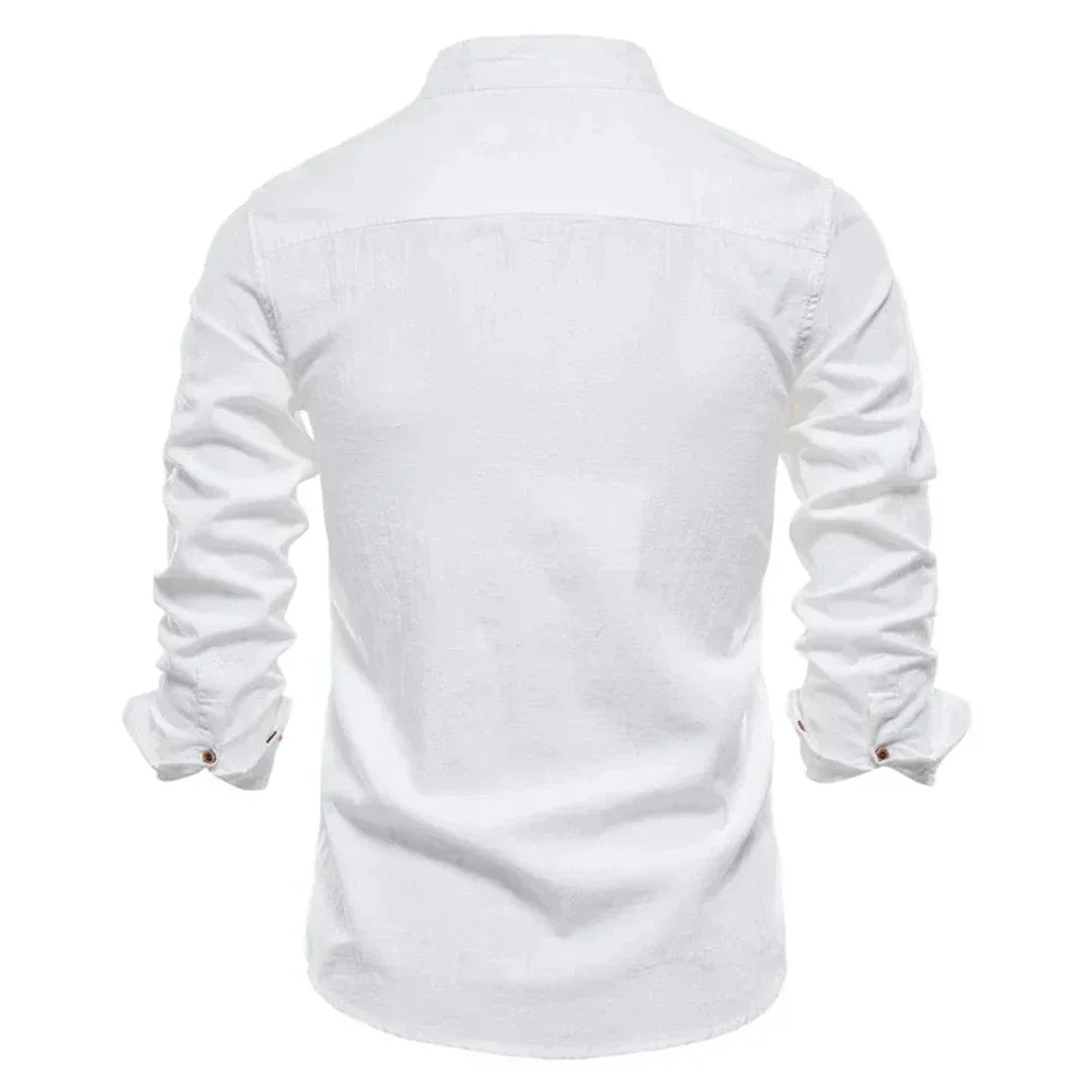 Upptäck en skjorta som kombinerar avslappnad elegans med subtil modernitet. Den tidlösa murarkragen ger en unik karaktär medan den mjuka bomullen låter dig röra dig fritt och bekvämt. Perfekt för både vardag och tillfällen då du vill sticka ut med stil.