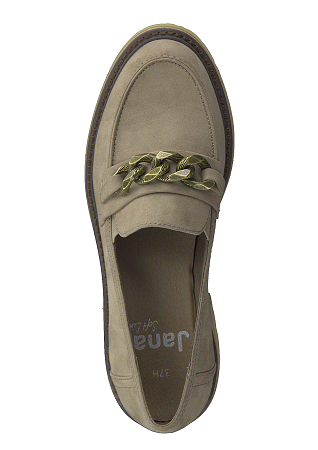 SE HIT! Snygg loafer i fin mocka-imitation från Jana! Loafern har resår på sidorna vid ovandel vilket garanterar en behaglig passform. Loafern har även fin kedjedetalj på ovandel som drar blickarna till sig. En snygg sko som kan användas till både fest och snyggare vardags-outfit.