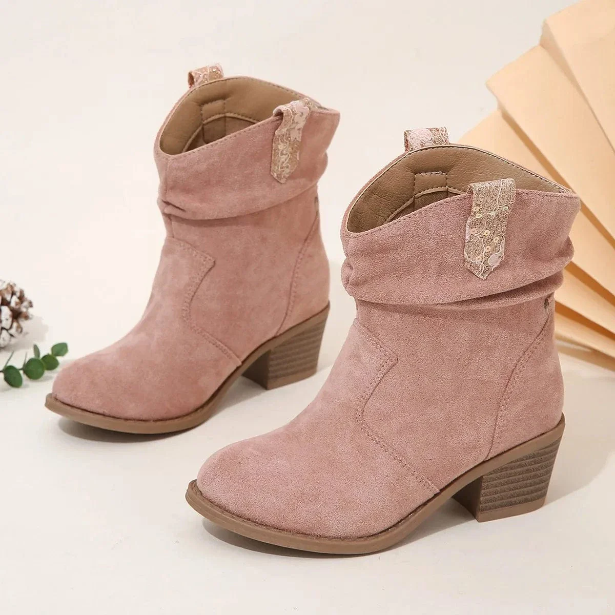 Slouchiga cowgirl boots i rosa eller beige : stilfull komfort för små cowgirls
