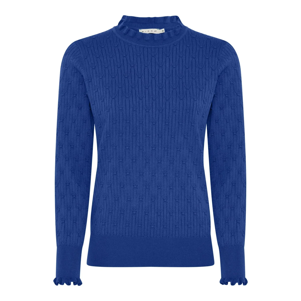 Fin stickad halvpolo från Micha. Dekorativ uppe och vid ärmsluten med en volangkant.