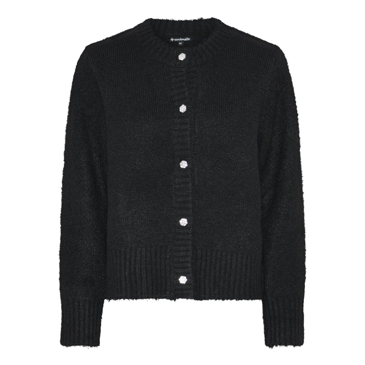 Mjuk stickad kofta från Soulmate. Knäppning fram med fina dekorerade knappar av strass.