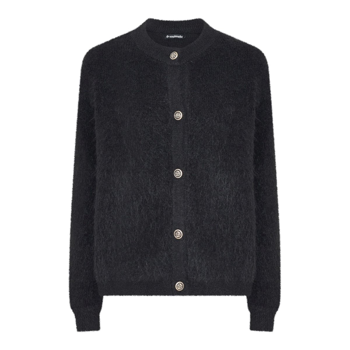 Mjuk härlig stickad svart kofta från Soulmate. Knäppning fram med fina dekorerade knappar.