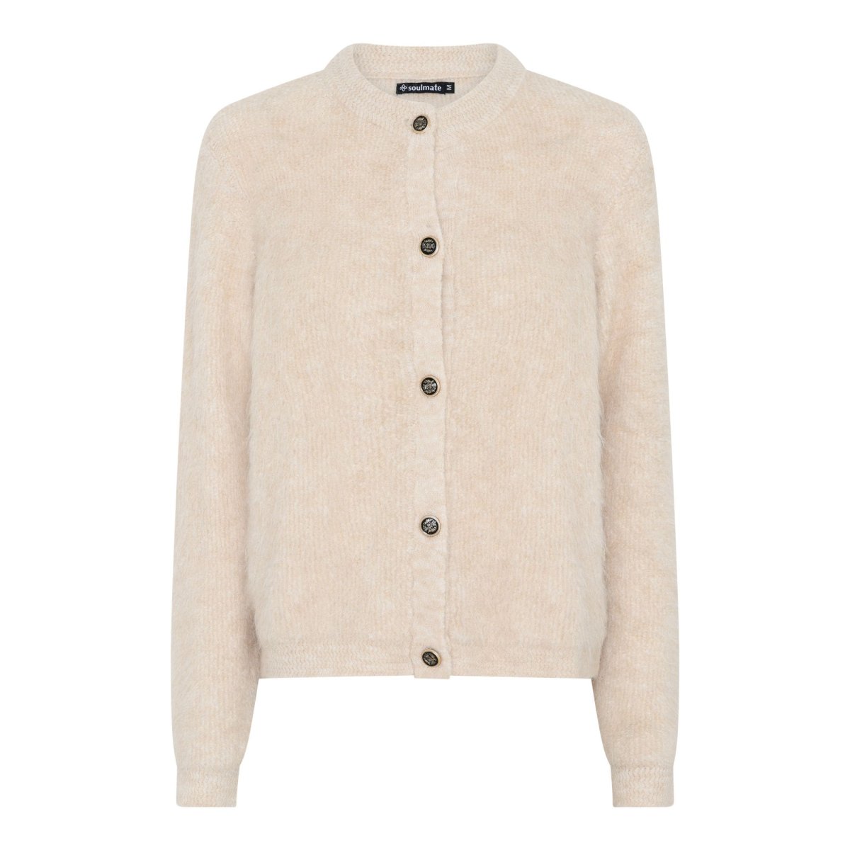 Mjuk härlig stickad beige kofta från Soulmate. Knäppning fram med fina dekorerade knappar.