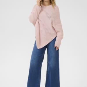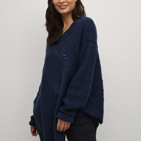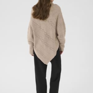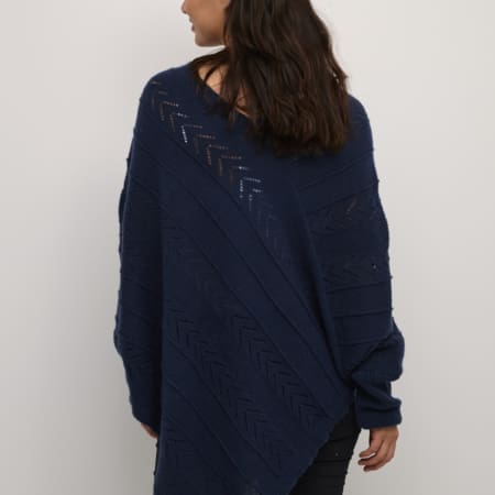Härlig stickad poncho med fint mönster från Cream. V- ringad och bred mudd vid ärmslutet.