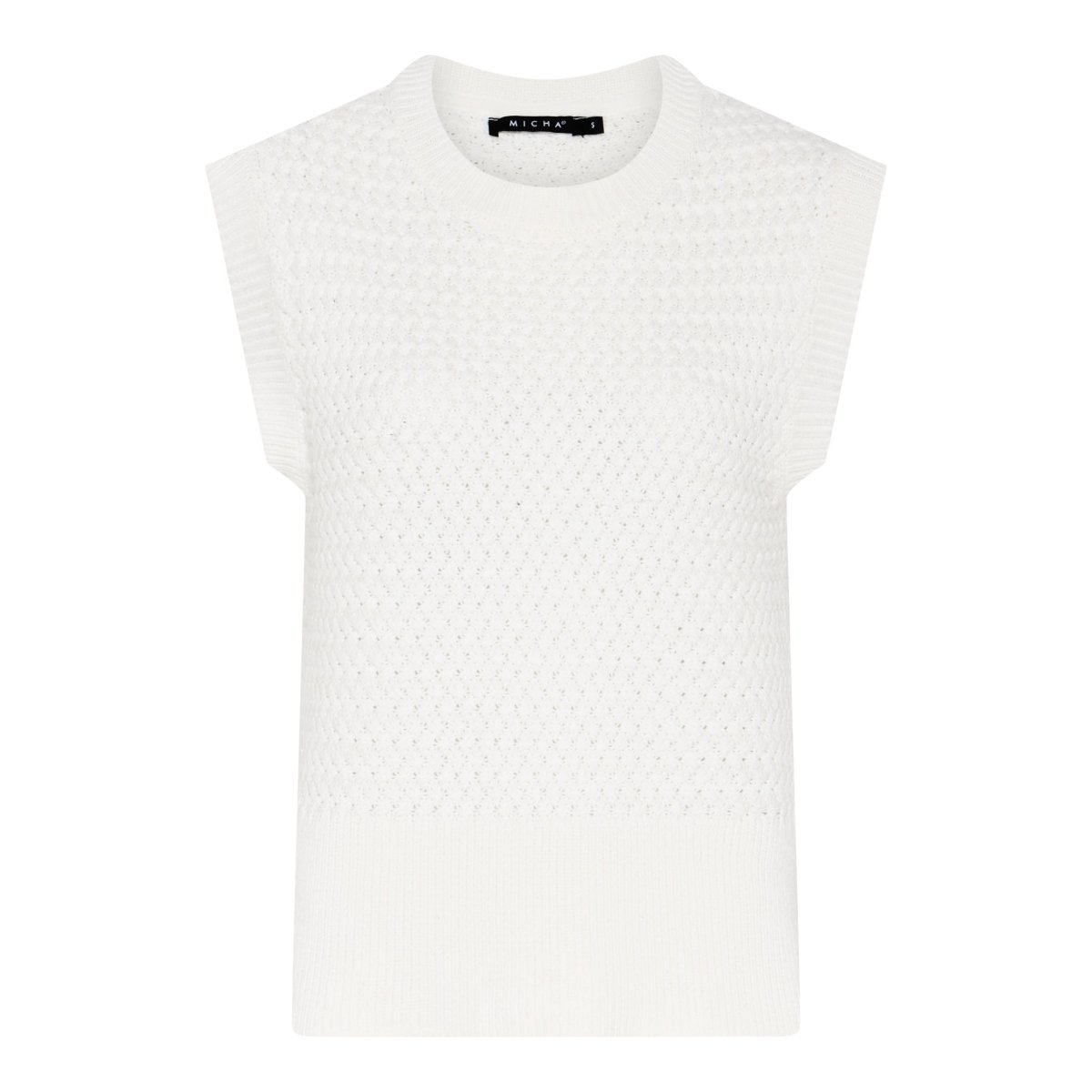 Enfärgad stickad slipover i fint flätat mönster från Micha. Rundhals och en bred mudd nedtill med slits vid sidorna.