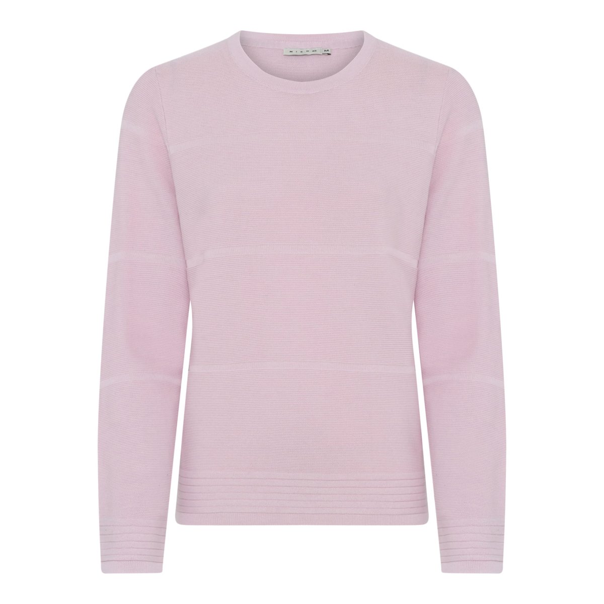 Denna fina enfärgade tröja i 100% bomull kommer från Micha. Tröjan har breda enfärgade ränder fram och bak på tröjan och smalare ränder vid ärmslut och nedtill. Rund hals och lång ärm.