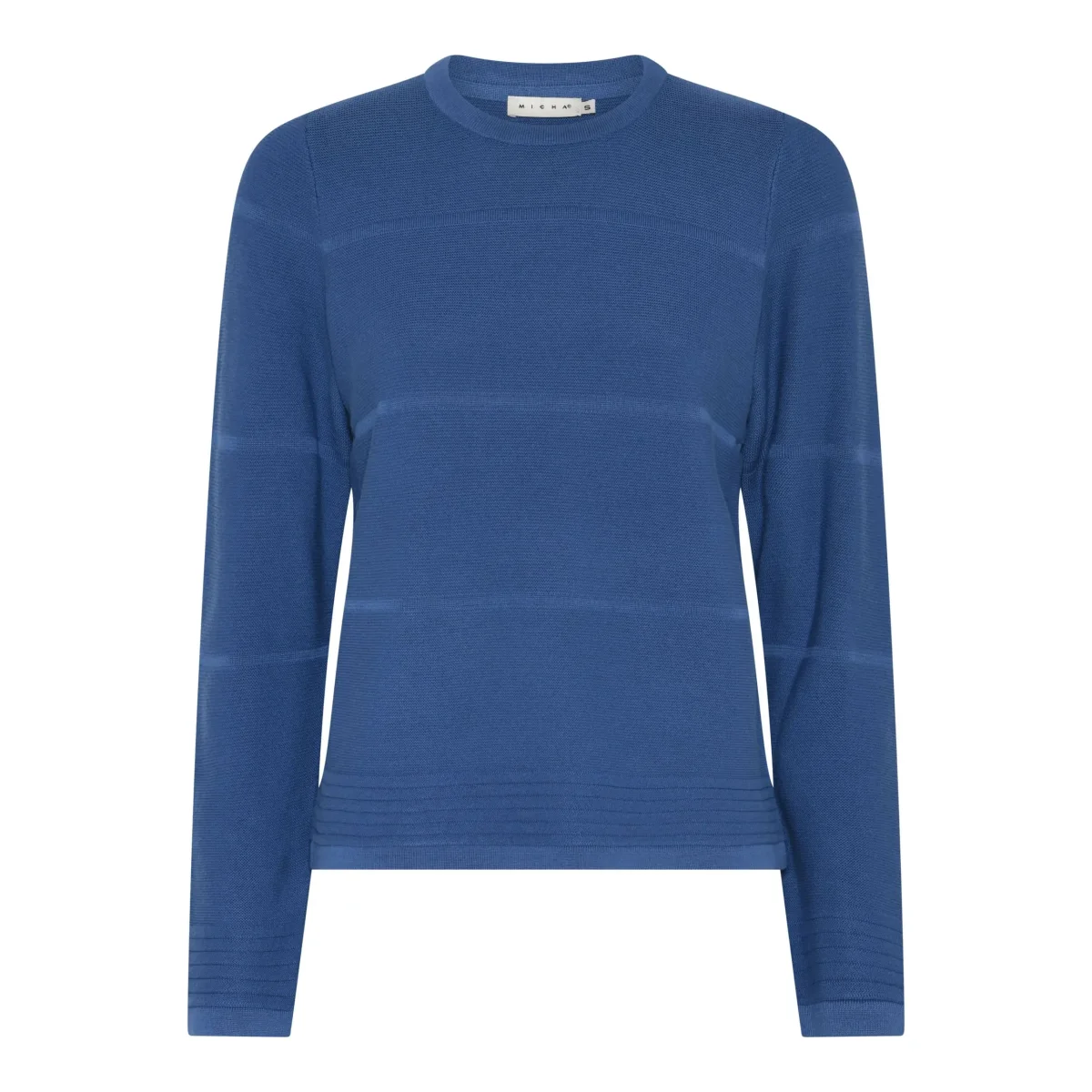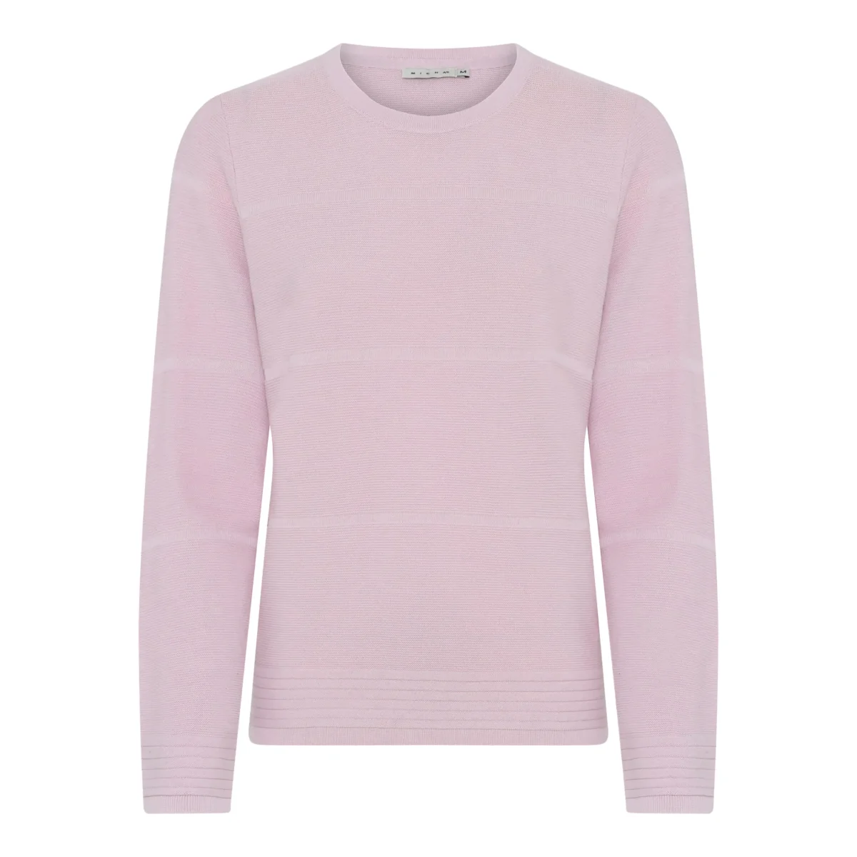 Denna fina enfärgade tröja i 100% bomull kommer från Micha. Tröjan har breda enfärgade ränder fram och bak på tröjan och smalare ränder vid ärmslut och nedtill. Rund hals och lång ärm.
