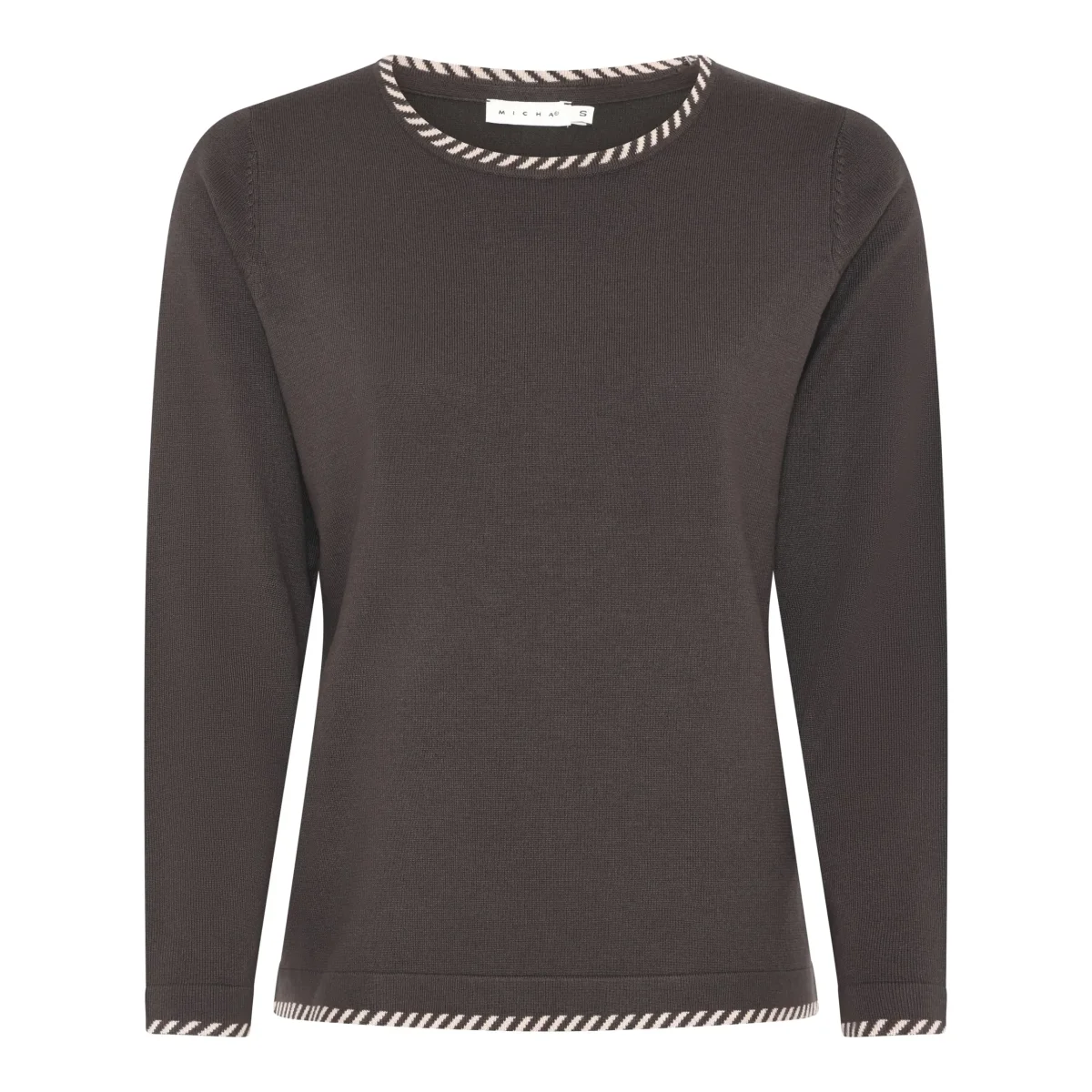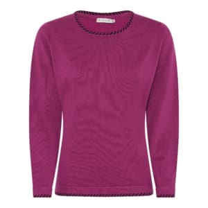 Fin stickad tröja från Micha. Rund hals med fin detalj runt halsringningen. Fin detalj även nedtill samt vid ärmsluten.