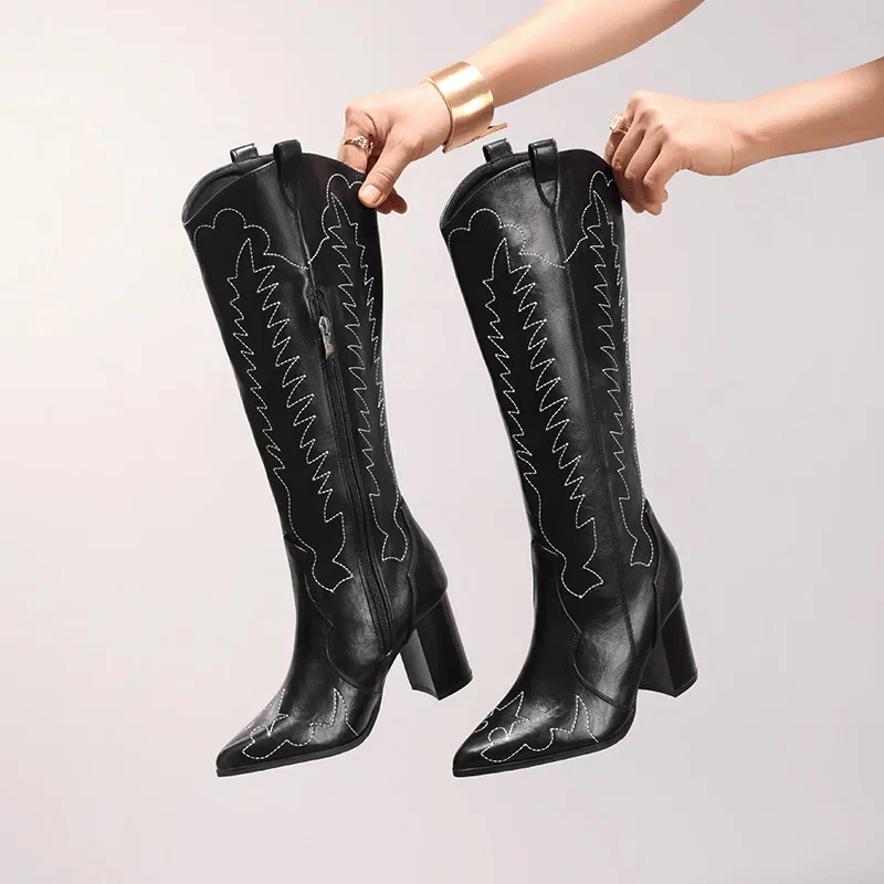 Svart cowboyboots med broderade detaljer och 10 cm blockklack – bootsen som får dig att känna dig stark, stolt och snygg
