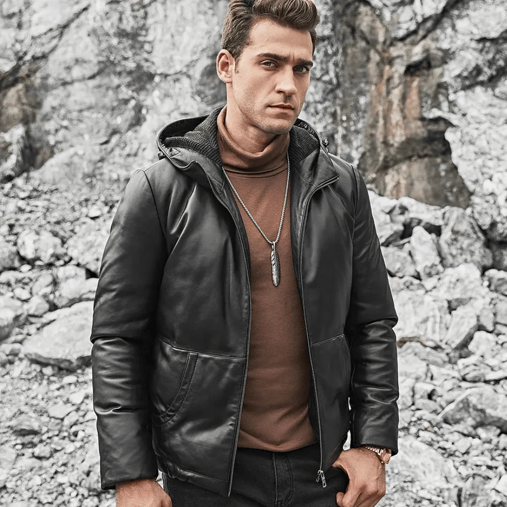 Därför älskar våra kunder denna dunfodrade läderhoodie