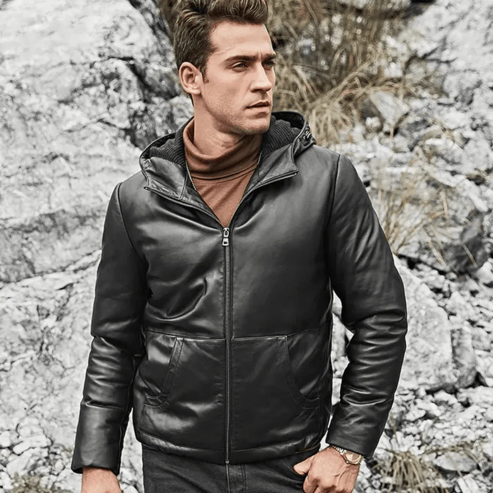 Känn kraften i en jacka som förenar rå western-energi med modern komfort. Den här svarta läder hoodien i äkta fårskinn och vitt ankdun omsluter dig med värme och en stil som aldrig viker sig. Perfekt för kyliga dagar, sena kvällar vid lägerelden eller bara när du vill känna dig som den mest självsäkra mannen i rummet.