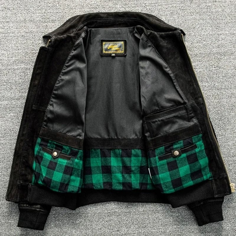 Upplev den perfekta balansen mellan råstyrka och sofistikerad design. Denna jacka är skapad för mannen som värdesätter kvalitet som känns lika bra som den ser ut. Med sitt mjuka, tåliga getskinn och den unika vintagetvätten får du ett plagg som andas äventyr redan från första stund. Det distinkta rutiga fodret ger en värmande omfamning och en stilfull kontrast när du bär jackan öppen. Detta är inte bara ett ytterplagg; det är en investering i din personliga stil som bara blir vackrare med åren.
