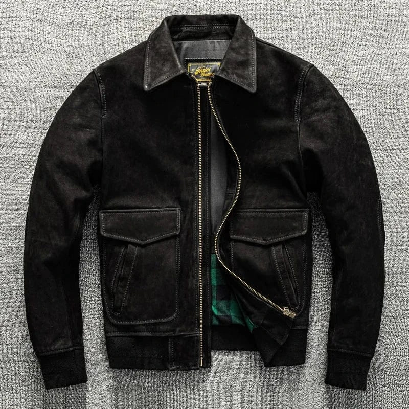 Svart pilotjacka i läder för herr: Tidlös elegans och robust karaktär för dig