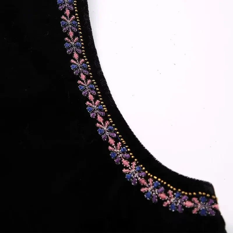Därför älskar våra kunder denna svartbroderade sammetsväst