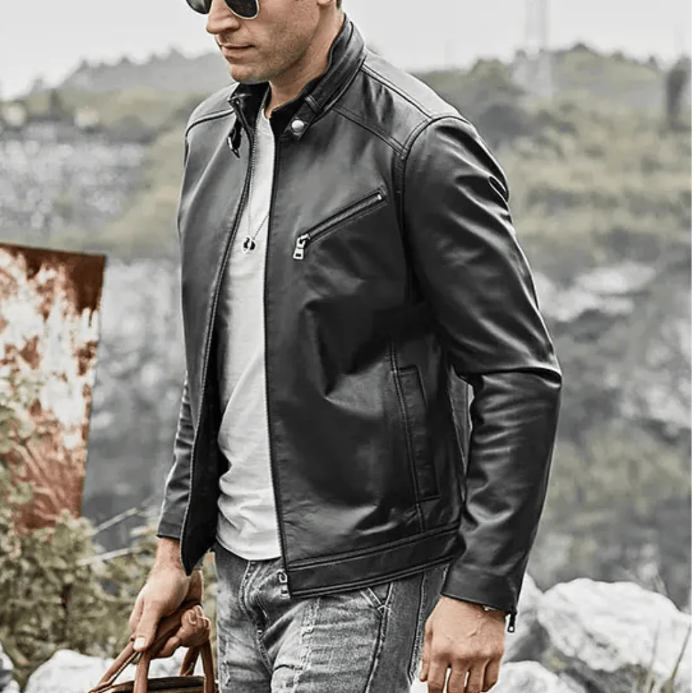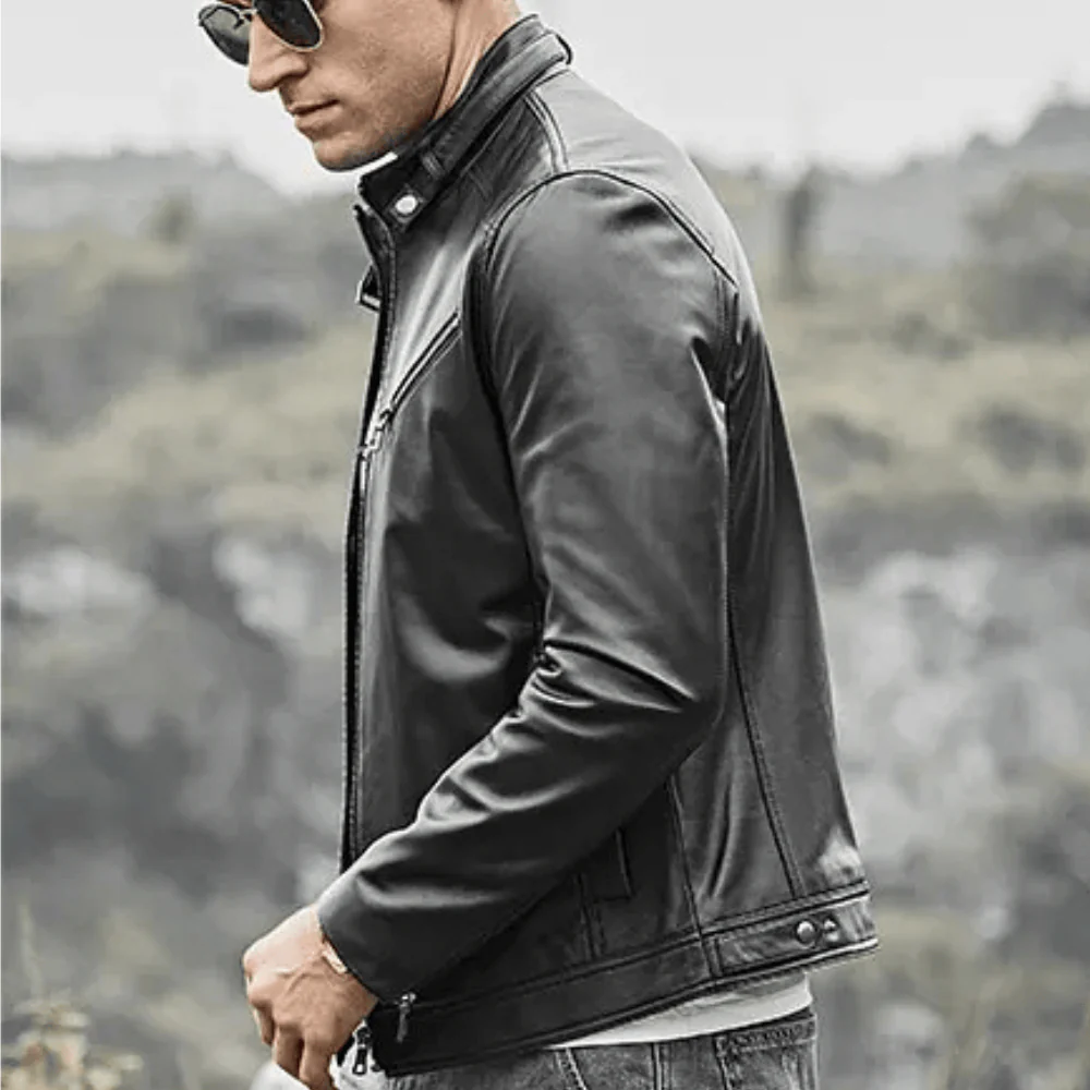 Svart slim fit läder jacka herr: En sofistikerad silhuett med tidlös attityd