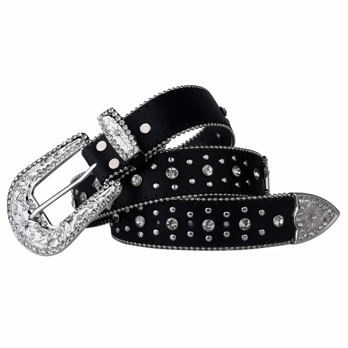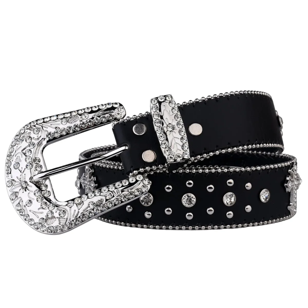 Det här är inte bara ett bälte – det är ett statement. Med gnistrande stenar, utsmyckat spänne och korsdetaljer får du ett westernbälte som känns både rebelliskt och lyxigt. Skapat för att bäras av dig som inte kompromissar med stil.