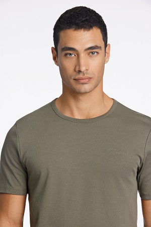 Fin t-shirt i Relaxed Fit modell i härlig bomull från Lindbergh. T-shirten har rund halsringning, kort ärm och diskret logga på vänster sida av bröst. Modellen på bilden är 185 cm lång, har ett bröstmått på 96 cm och bär storlek M.