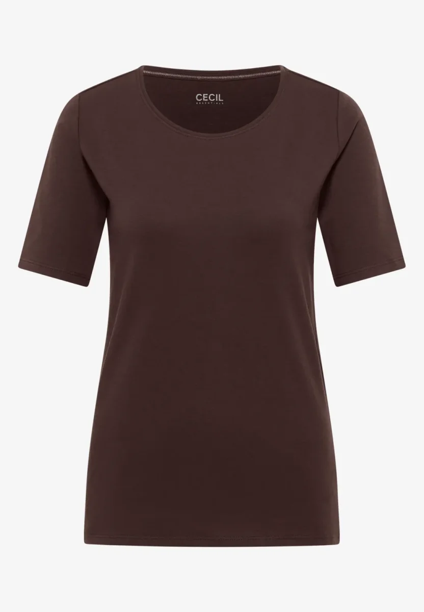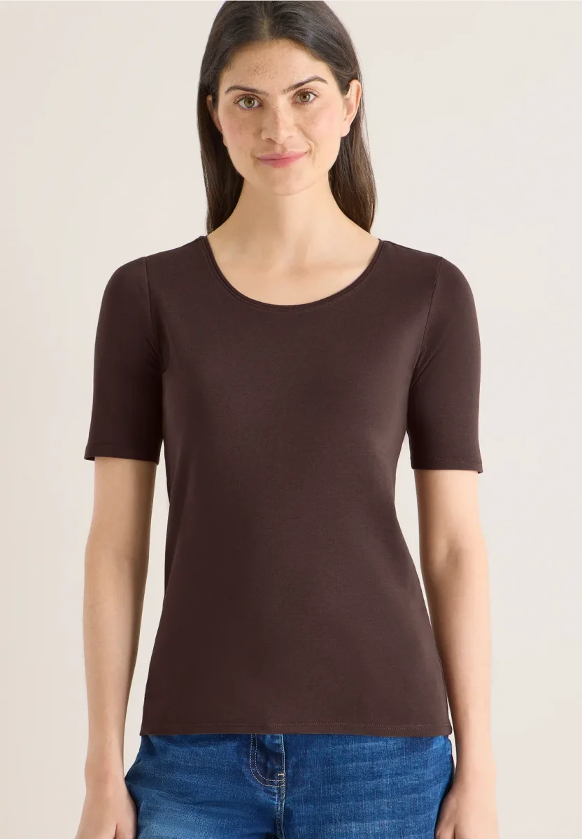 Snygg bas t-shirt från Cecil. Rund hals och lite längre ärm, den når till halva överarmen ungefär.
