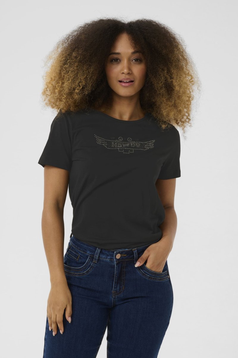 T-shirt med tryck från Cream. Trycket är i små glitterstenar
