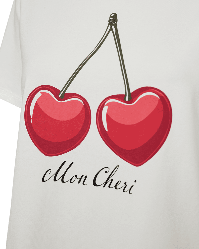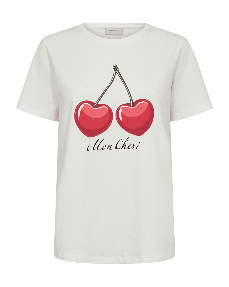 T-shirt med körsbärstryck fram från Freequent i mjuk bomull. Rund halsringning och kort ärm.