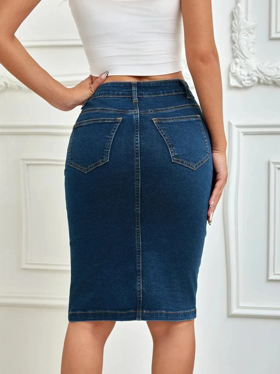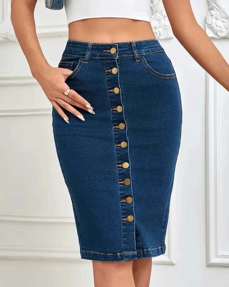 Tajt midi-jeanskjol med knappar – en hyllning till dina former i klassisk denim