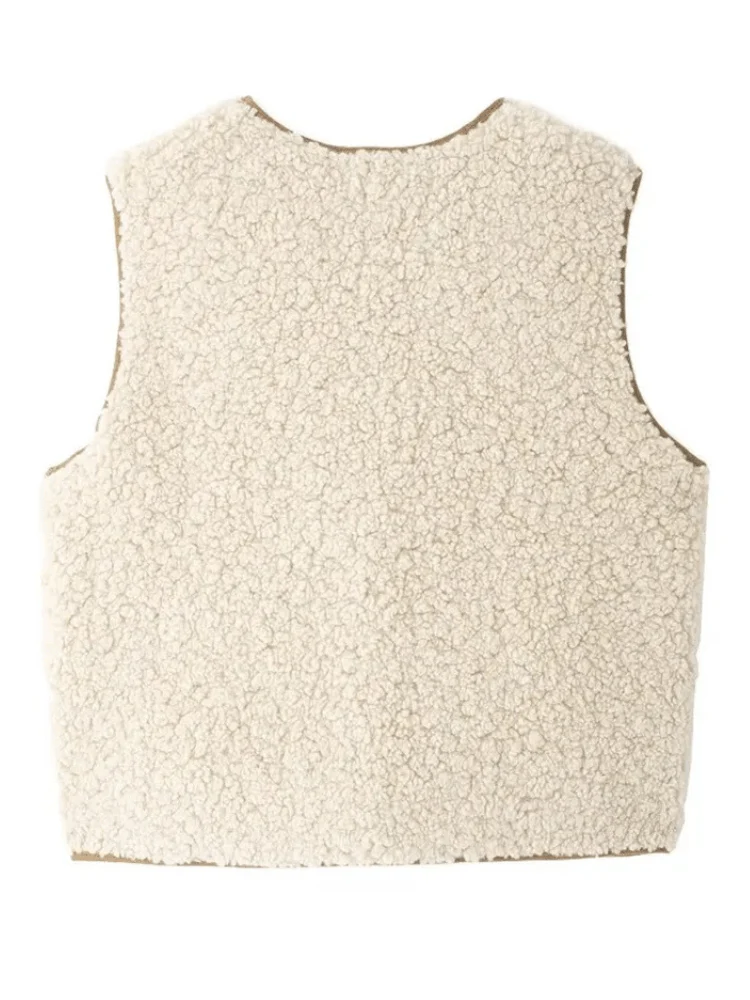 Ge din outfit en touch av rustik charm och en oslagbar känsla av komfort med vår teddyväst för dam – perfekt för kyliga höst- och vinterdagar. Den här västen är lika mysig som den är stilfull, och blir snabbt ett av dina mest använda plagg.