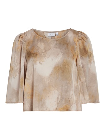 Fantastisk fin topp från Vila! Toppen är något kortade i modellen och har en rund halsringning med vida luftiga ärmar. Toppen är tillverkad i ett tunt och härligt polyester tyg och kommer i jordnära toner. Styla tillsammans med matchande kjol för ett komplett set art.nr. 114365.