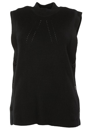 Stickad slipover. Snyggt hålmönster fram. Stora dekorativa knappar i sidorna.