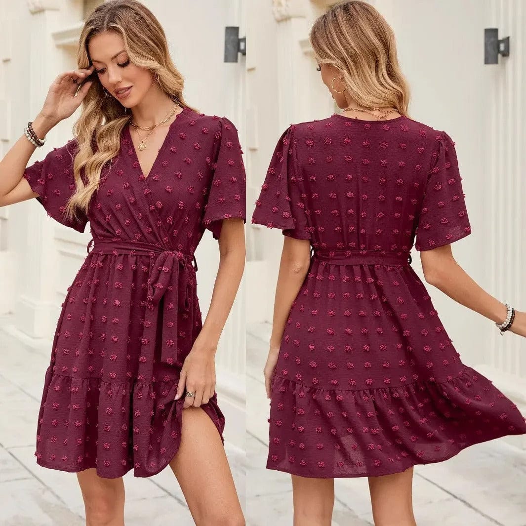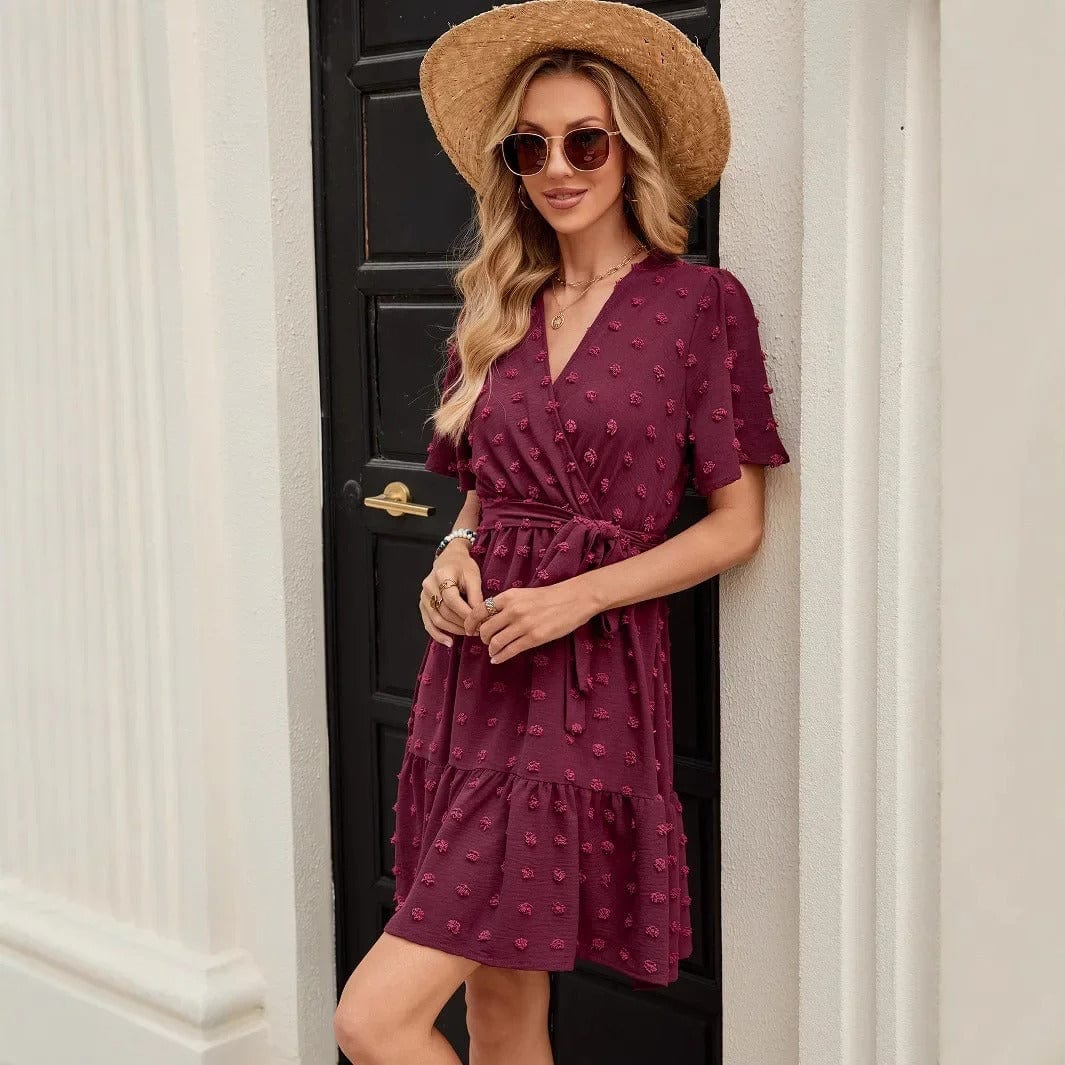 Lyft din sommarstil med denna vinröda klänning som kombinerar elegans och komfort. Perfekt för både vardagliga äventyr och speciella tillfällen.