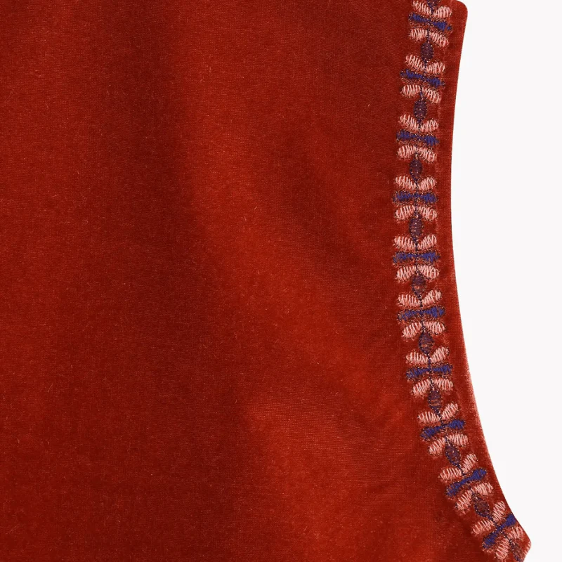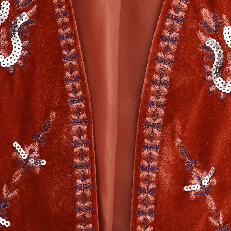 Vintage-inspirerad damväst i sammet med blombroderi: din boho-chic följeslagare