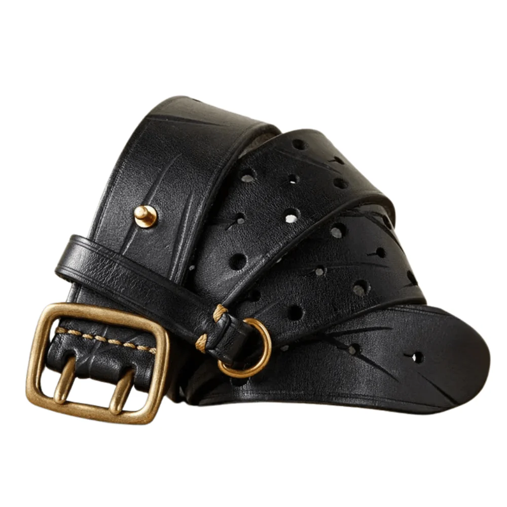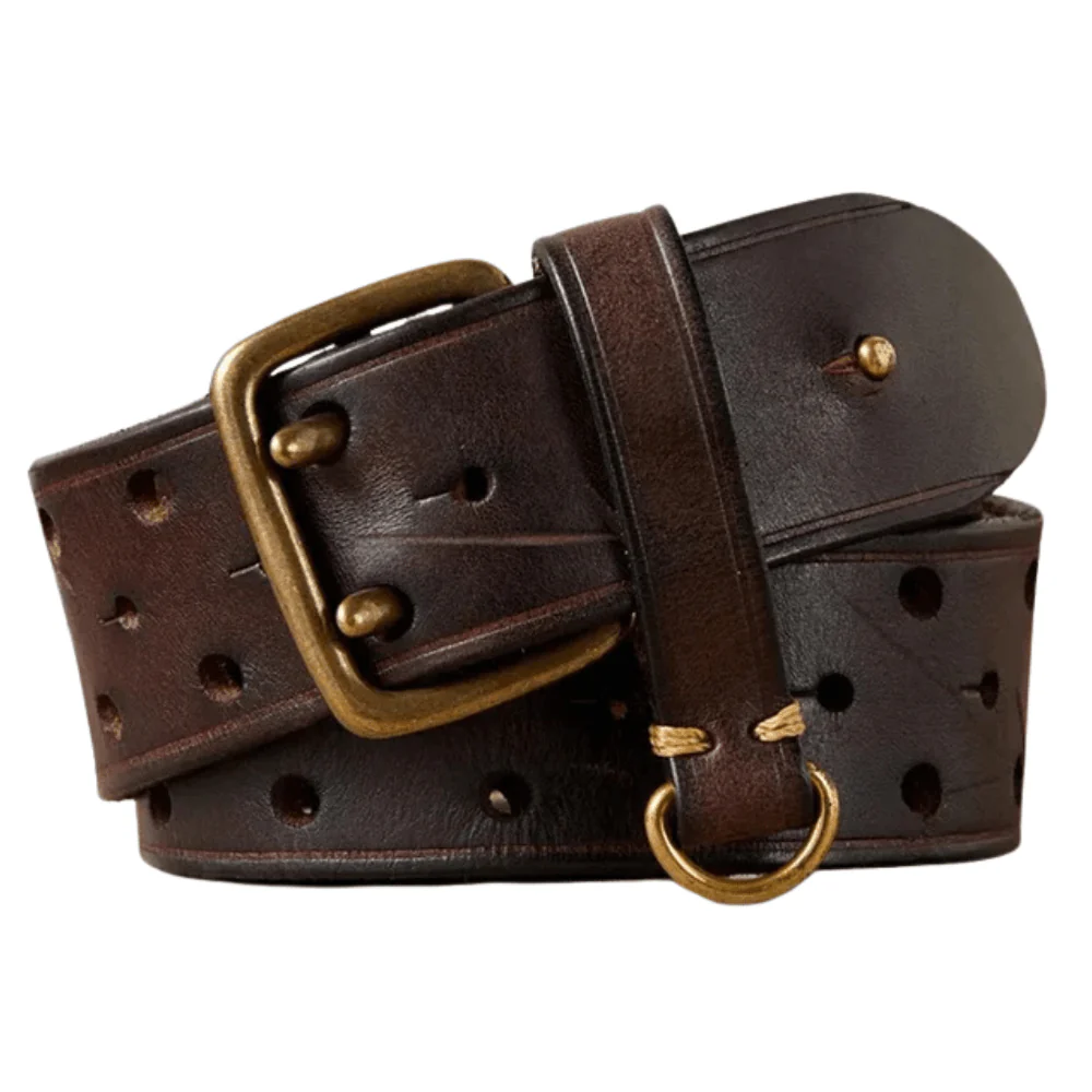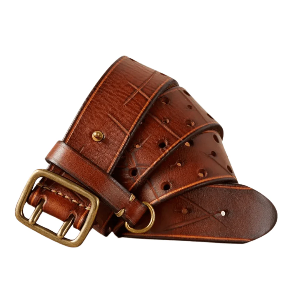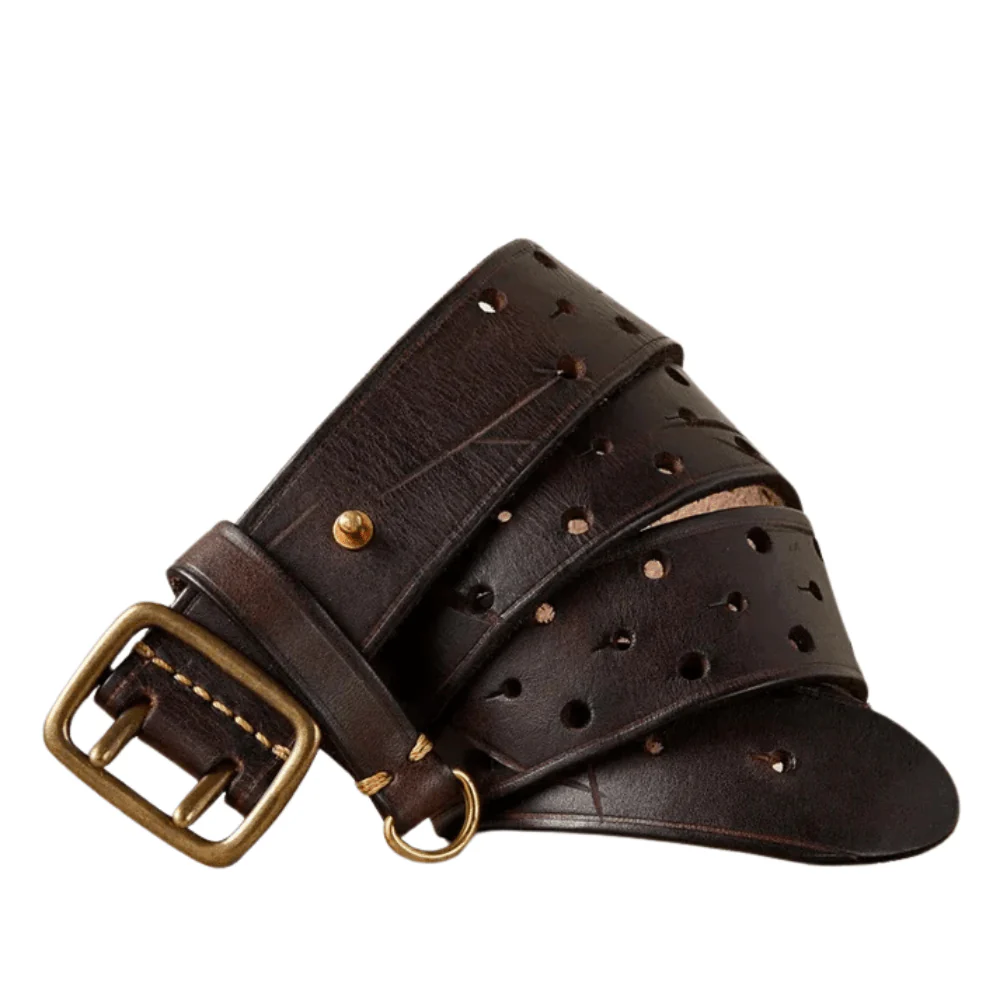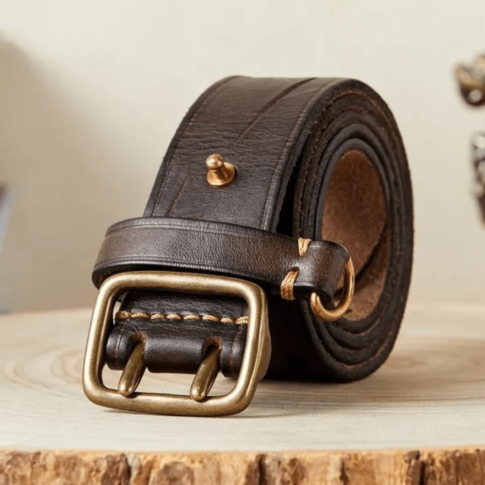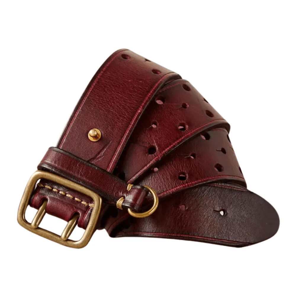 Det här är inte bara ett bälte – det är ett statement. Tillverkat av förstklassigt kohudsläder, ger det här vintagebältet med dubbel metallspänne dig en självsäker silhuett och ett tidlöst uttryck.